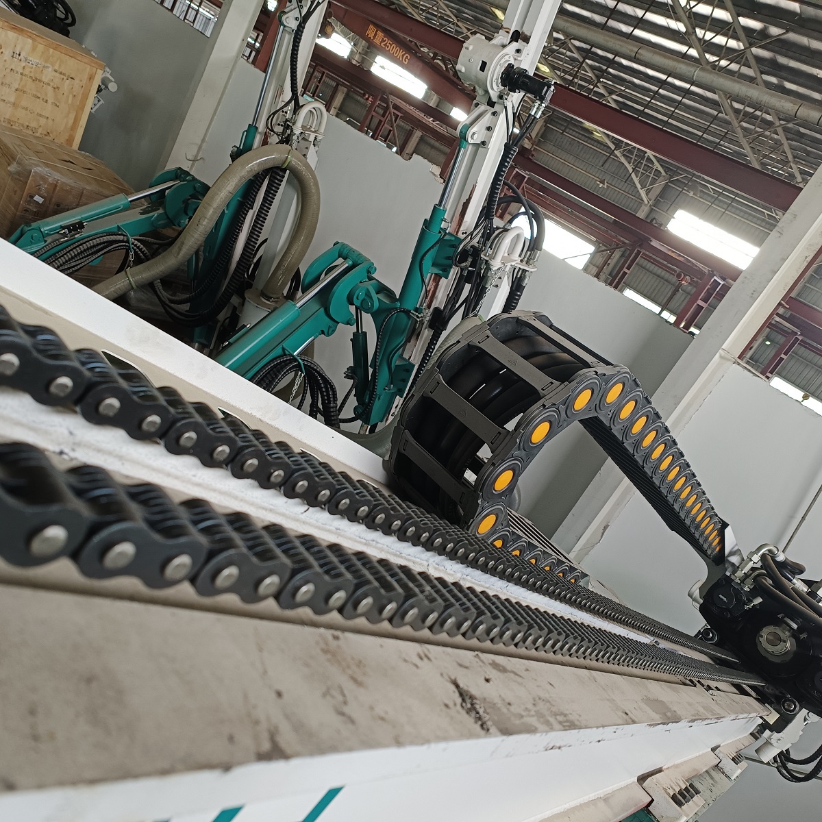 Den kjededrevne skyvemekanismen er integrert i den kombinerte fjellbore- og boltemaskinen, og muliggjør jevn og stabil fjellboltmating.