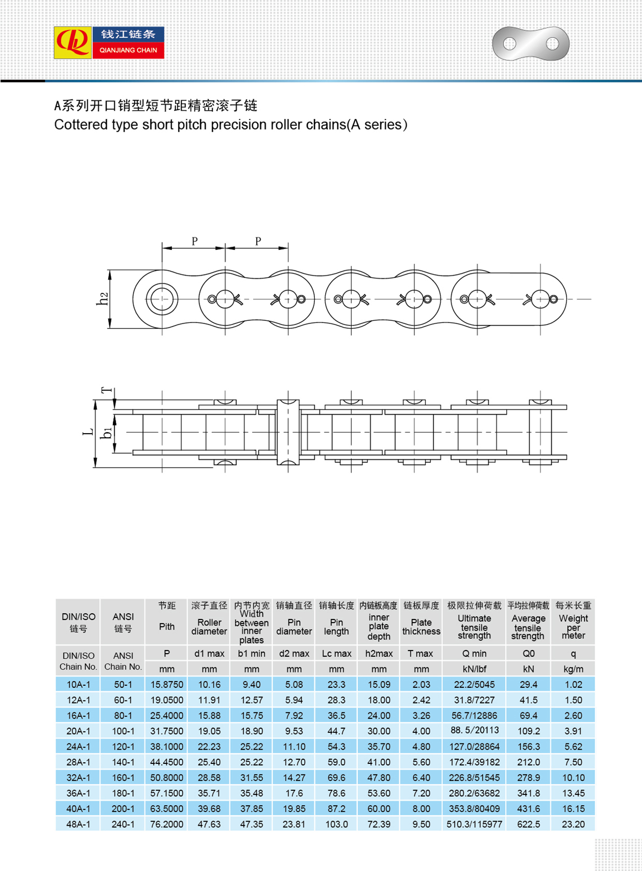 Hvis du leter etter en kjede som kombinerer styrke, fleksibilitet og brukervennlighet, er Cottered Type Short Pitch Precision Roller Chains (A-serien) ditt beste valg. Øk maskinens effektivitet i dag – velg presisjon, velg pålitelighet, velg fortreffelighet!