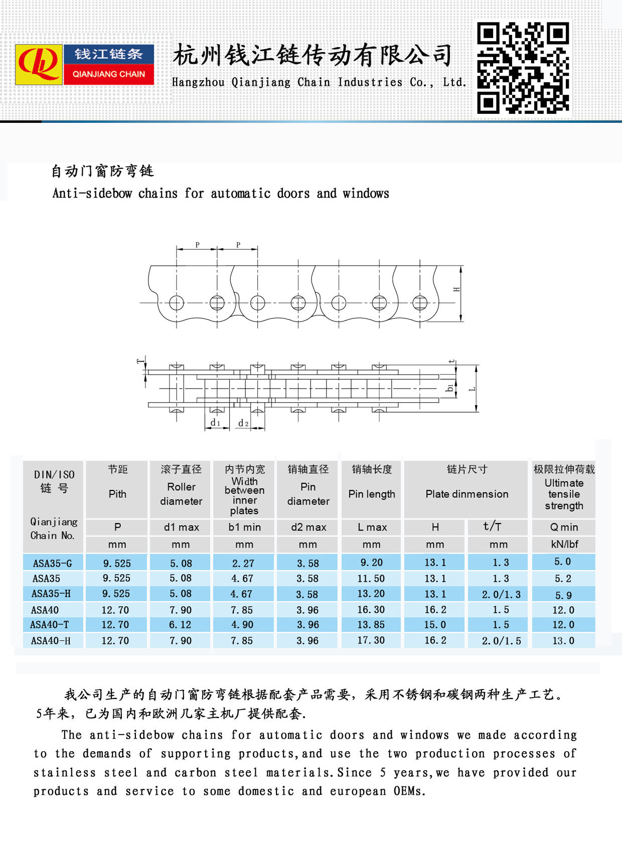 Fine utførelse aldringsbestandige anti-sidebuekjeder for automatiske dører og vinduer