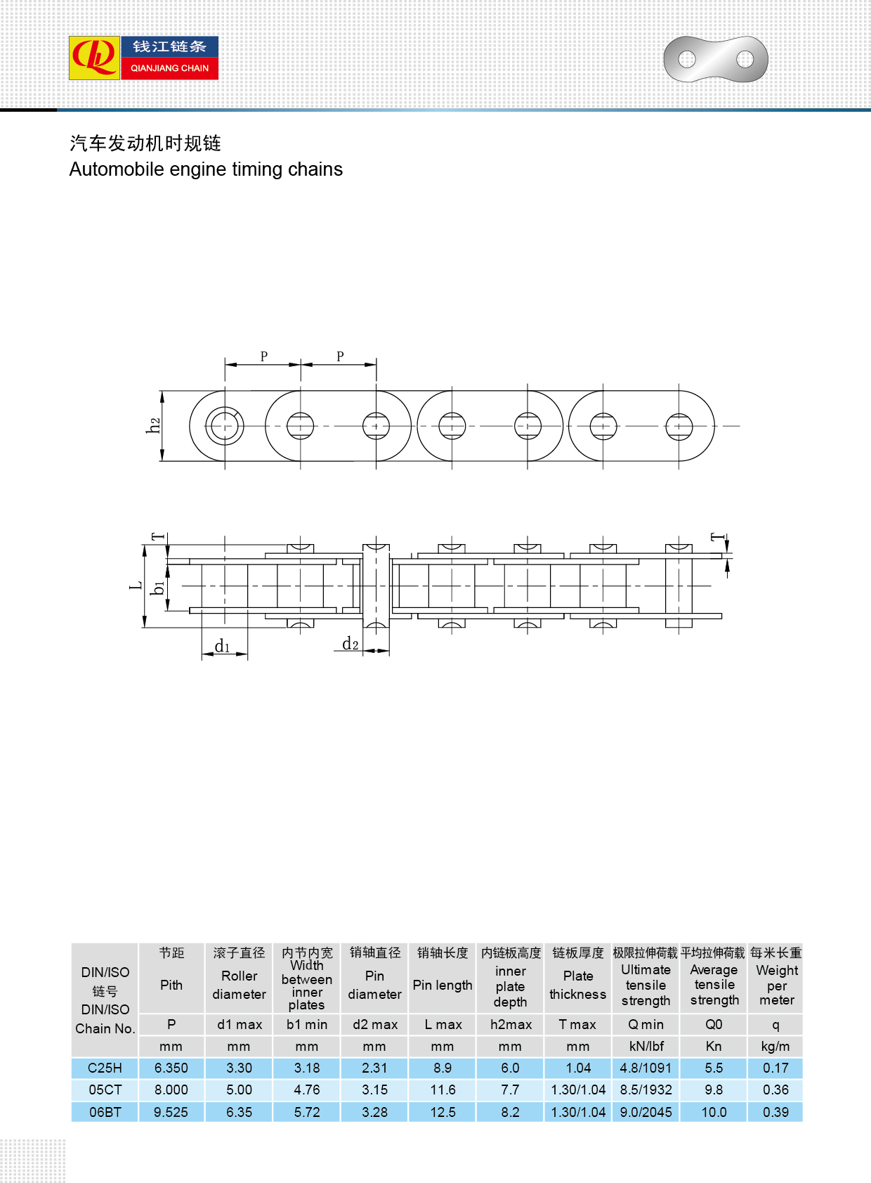 Slagfasthet Tilpassbare timingkjeder for bilmotorer er konstruert for å levere uovertruffen ytelse og pålitelighet i de krevende bilapplikasjonene. Disse registerkjedene er designet med banebrytende teknologi og er bygget for å tåle forhold, inkludert høyhastighetsdrift og plutselige lastendringer. Deres eksepsjonelle slagfasthet sikrer jevn og konsistent motorsynkronisering, reduserer risikoen for kjedesvikt og forbedrer den generelle kjøretøyytelsen.