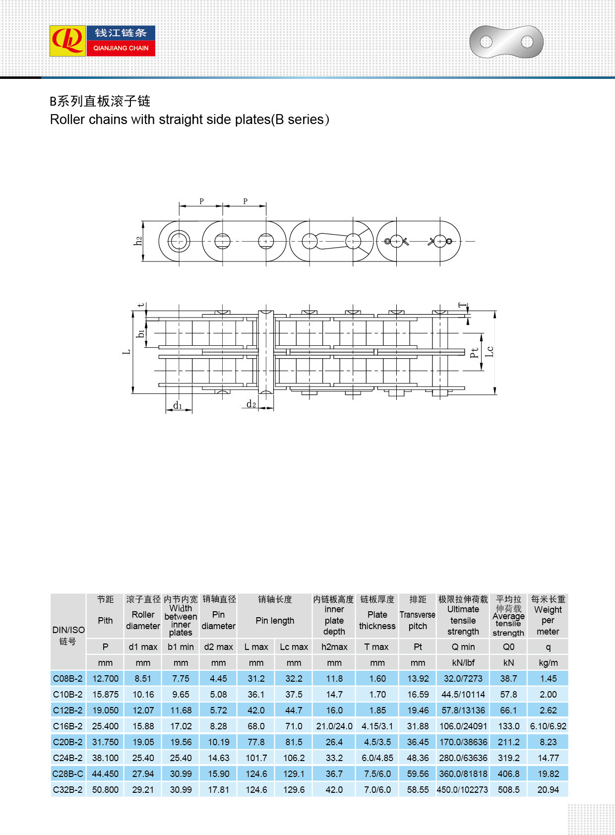 Rullekjeder med rette sideplater (B-serien) er designet for å levere uovertruffen effektivitet og pålitelighet i kraftoverføring, noe som gjør dem til et toppvalg for et bredt spekter av industrielle bruksområder. Disse kjedene er konstruert med presisjon for å sikre jevn og jevn ytelse, selv under krevende forhold. Deres rette sideplatedesign forbedrer styrke og stabilitet, slik at de kan håndtere høyere belastninger samtidig som funksjonaliteten opprettholdes. En av de fremtredende egenskapene til denne serien er dens eksepsjonelle kraftoverføringseffektivitet. Den nøyaktige konstruksjonen reduserer friksjon og energitap, og sikrer ytelse fra maskinene dine.
