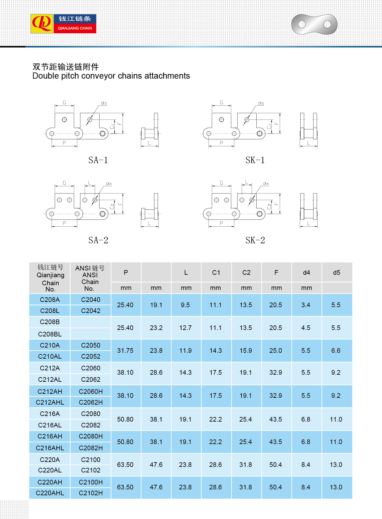 Dobbel-pitch-transportørkjeder med vedlegg er en allsidig og effektiv løsning for materialhåndtering og transportapplikasjoner. Disse kjedene er designet med utvidede stigningsdimensjoner, og tilbyr et lavere vekt og kostnadseffektivt alternativ til standard transportørkjeder, samtidig som de opprettholder høy styrke og holdbarhet. Nøkkelfunksjonen til disse kjedene er deres tilpassbare vedlegg, som kan skreddersys for å passe spesifikke operasjonelle behov – enten det er transport av produkter horisontalt, vertikalt eller rundt kurver. Disse festene holder gjenstander sikkert på plass under transport, og sikrer jevn og pålitelig bevegelse selv i krevende miljøer.