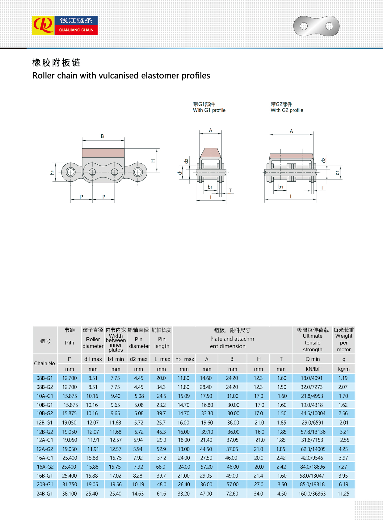 I moderne industriell automatiseringsproduksjon påvirker stabiliteten og effektiviteten til materialtransportsystemet direkte den totale produksjonskapasiteten og kvaliteten. Som en høyytelses integrert transmisjons- og transportløsning, er rullekjeden med vulkaniserte elastomerprofiler mye brukt i matforedling, logistikksortering, landbruksmaskiner, pakkeutstyr og andre felt, og skiller seg ut for sin slitestyrke, støtdemping og anti-skli egenskaper. Rullekjeden med vulkaniserte elastomerprofiler er basert på standard rullekjede, og bruker en avansert vulkaniseringsprosess for å feste høykvalitets gummi eller termoplastisk elastomer til den ytre kjedeplaten eller lagerplaten på kjeden. Denne komposittstrukturen beholder ikke bare den høye styrken og holdbarheten til metallkjeden, men gir den også følgende unike fordeler: