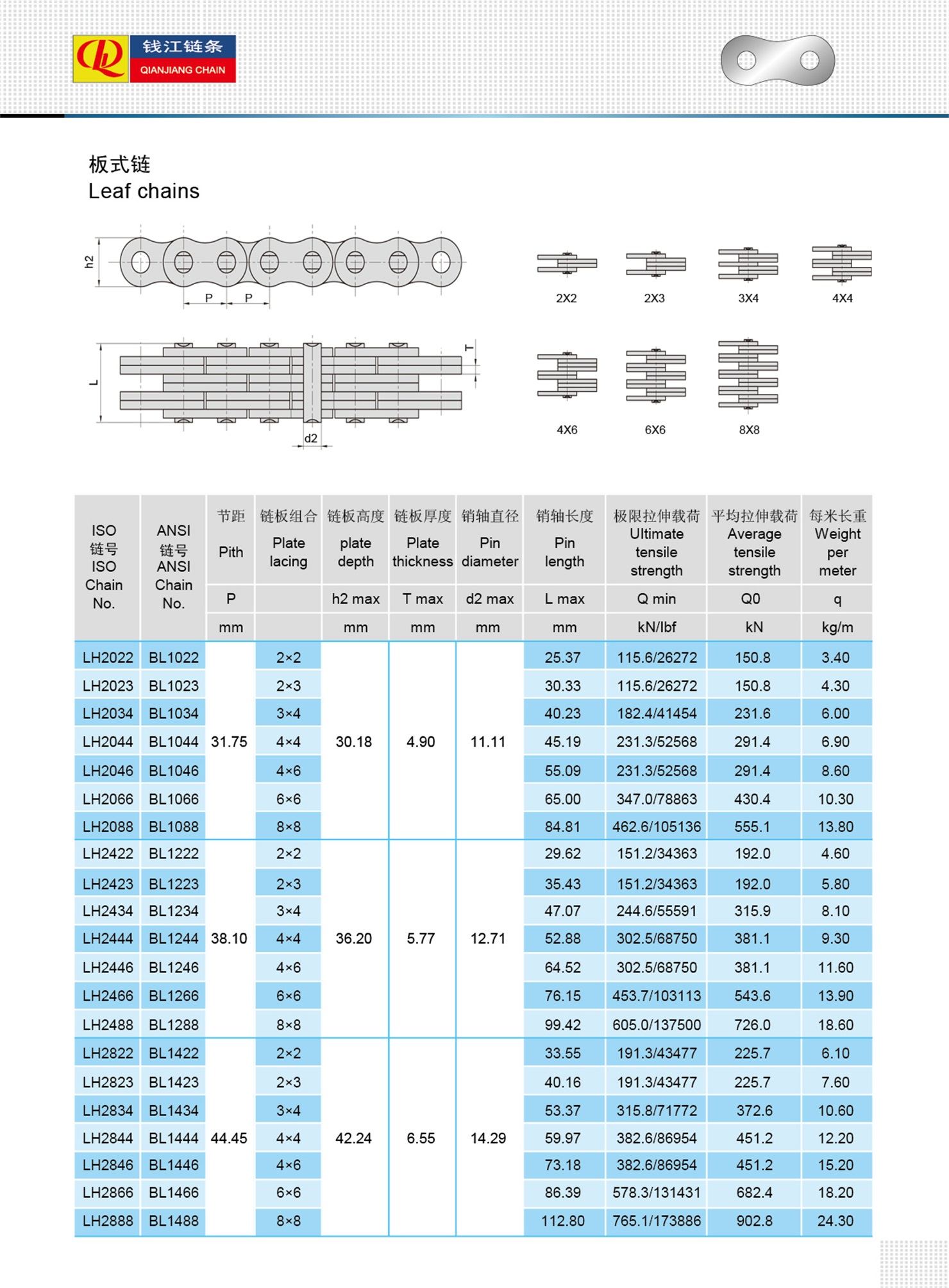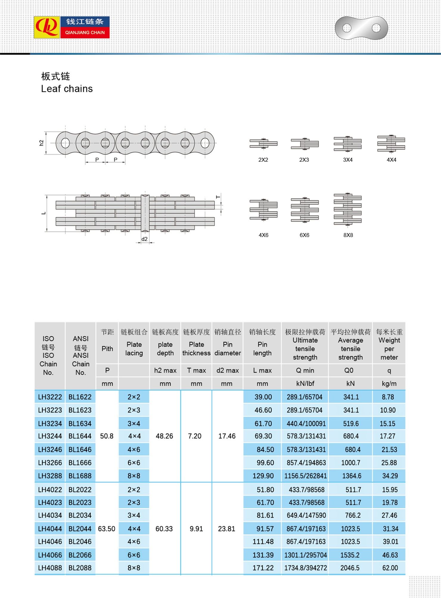 LH (BL Series) slitesterke slitesterke Leaf-kjeder